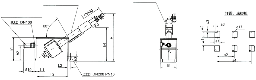 | 核心件型号 | 大处理量 | L0 | B | H | h1 | h2 | h3 | h4 | L1 | L2 | W1 | W2 | W3 | a1 | a2 | a3 | a4 |