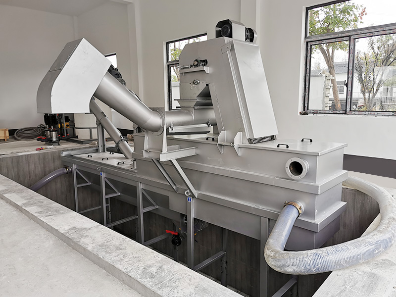 带有螺杆过滤机的浆液过滤机,这类分离机处理效率高、结构紧凑、体积小、重量轻、安装移动方便,是处理较小污水量和粪便的设备。带有沉砂槽和排砂螺杆的一体化浆液过滤裝置。