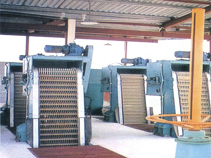 该设备釆用回转式,由一种特殊形状的犁形耙齿按一定的装配顺序的数量排列在横轴上,组成耙齿链,根据过水流量,装配成不同的间隙,安装在泵站或水处理系统的入口处,当驱动装置带动耙齿链自下向上运动时,水中的杂物被耙齿链捞起,液体则在栅隙中流过,设备转动到上部顶点后,耙齿链改变运行方向,由上向下运动,物料依靠自重从耙齿上自行脱落,当耙齿从反面转到底部时,又开始另一循环往复的连续运行,从而不断的从水中清捞杂物,达到固液分离的目的。